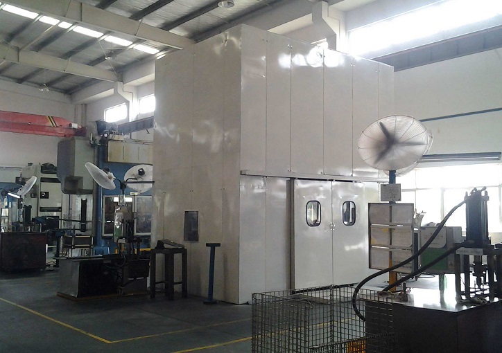 為了解決沖床噪聲污染的問題,通常將沖床放在單獨的隔音房間內(nèi),這就是沖床隔聲罩。沖床隔聲罩要想取得很好的效果,隔聲罩的做法非常重要,對沖床隔聲罩的隔聲效果起著決定性作用。 隔聲罩是用來把噪聲較大的裝置封閉起來,可以有效地阻隔噪聲的外傳和擴散,隔聲效果大約20~40dB。隔聲罩可隔離設備的高噪聲,作為高噪聲車間的控制室,減少噪聲對人體的危害。同時配備有通風降溫、散熱裝置和進、排風消音器等,保證設備正常工作。